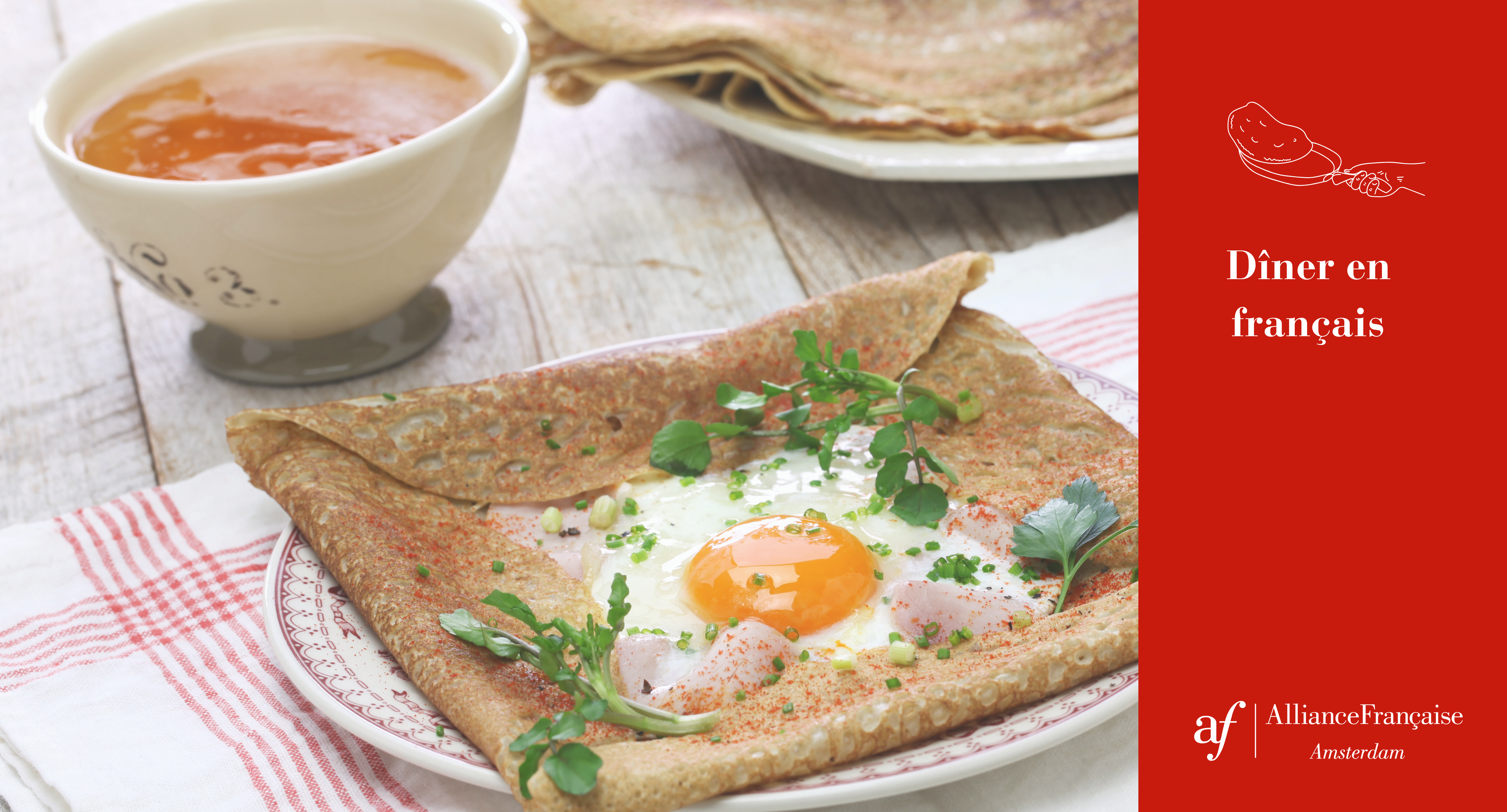 De Alliance Française Amsterdam nodigt je uit voor een gezellig moment onder het genot van een Bretonse galette, een kans om je Frans te oefenen onder Francofonen en Francofielen!