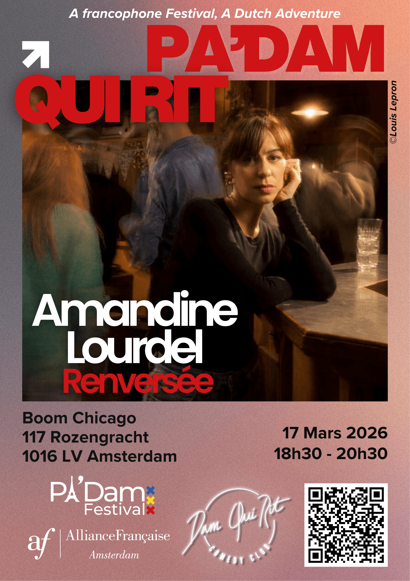 Kom naar een bijzondere avond met Franstalige stand-up comedy. Was je de vorige keer dat ze hier was al fan van haar, of heb je haar ontdekt via de radio of sociale media? Dan ga je de nieuwe show Renversée van Amandine Lourdel zeker geweldig vinden. Een grappige en gevoelige show, waarin Amandine vertelt over haar vele en gevarieerde existentiële zoektochten.